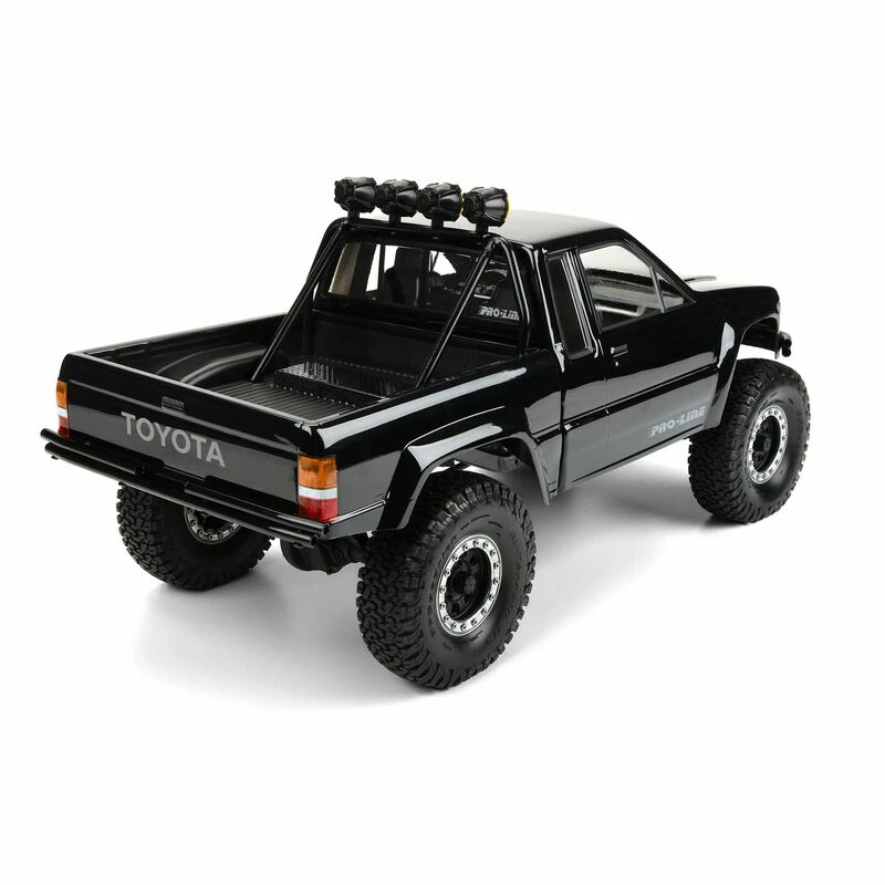 Toyota fans rejoice! Pro-Line is pleased to announce the release of the fully licensed 1985 Toyota HiLux SR5 truck body for the 12.3″ Wheelbase Crawlers! Pro-Line brings another iconic crawler back to life with exacting scale details and performance enhancements that will please any scale adventurer. Get Back to the Future with Pro-Line’s new 1985 Toyota HiLux SR5 Clear Body!!