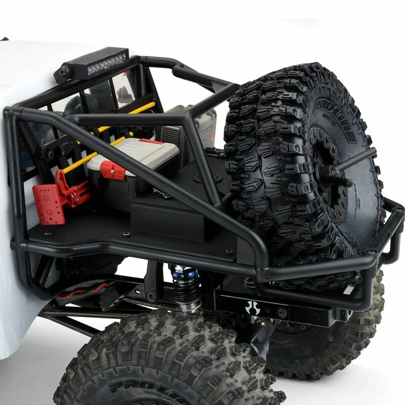 This is a Back-Half Cage for Pro-Line Cabs Crawler Bodies. Introducing the brand-new Back-Half Cage from Pro-Line, which allows you to put Pro-Line Cab Only Bodies on your TRX-4®, Venture, Ascender® or SCX10â„¢ II! The new Back-Half Cage opens a whole new world of body options for crawler fans! The Back-Half Cage is made from extremely durable Black Nylon and is designed to mimic full-size custom welded tube Back-Half Cages. The Cage includes a spot for a Spare Pro-Line Rock Crawling Tire, as well as a rack for mounting Scale Accessories. The molded in gas tank detail serves as the spot for putting the rear body mount holes through and the location of the holes will depend on your choice of chassis and body cab. All the metric hardware is included, and cage assembly is required. If you are ready to dramatically change the look of your stock crawler then you need Pro-Line’s Back-Half Cage! Get yours today!
