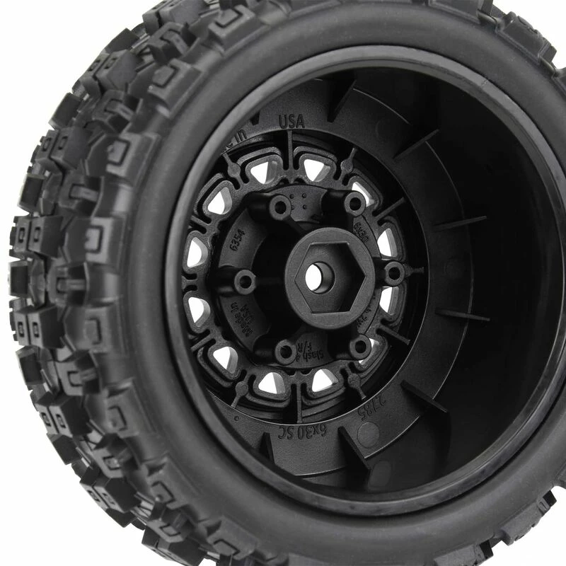 PRO1015610 | Badlands MX SC 2.2″/3.0″ M2 (Medium) All Terrain Tires Mounted on Raid Black 6×30 Removable Hex Wheels (2) for Slash® 2wd & Slash® 4×4 Front or Rear