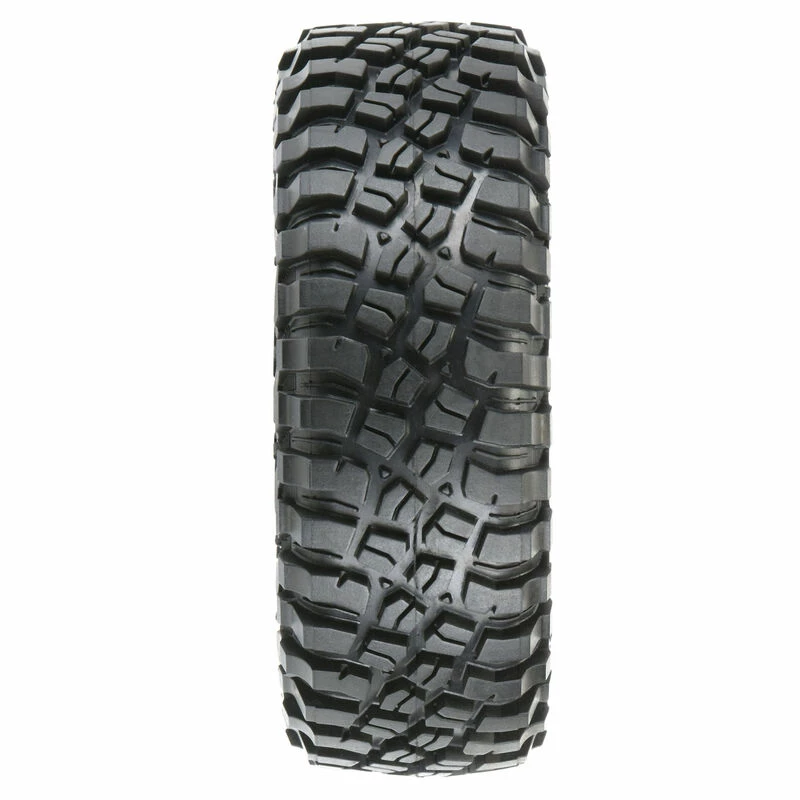 This is a pair of Class 1 BFGoodrich® Mud-Terrain T/A® KM3 1.9″ tires. Pro-Line is proud to announce, in cooperation with the leading full-size Off-Road tire manufacturer BFGoodrich®, the co-release of the brand-new fully licensed Class 1 (4.19″ OD) size Mud-Terrain T/A® KM3 1.9″ tires! Pro-Line was given early access to the design of the full-size BFG Mud-Terrain T/A® KM3 tire and recreated it for the Scale Crawling community in 1.9″ size! The KM3 tires are now available in the softest Rock Crawling Rubber ever made: The all-new Predator Compound! The Super Soft Predator Compound excels on wet or ultra-low traction surfaces to give you grip like you have never experienced before. The Mud-Terrain T/A® KM3 (Key feature: Mud traction 3rd Generation) is BFGoodrich’s Off-Road Maximum Traction tire with aggressive tread lugs that bite into loose or muddy surfaces and climb over slippery rocks. Based on the BFGoodrich® Krawler T/A® KX symmetric tread design, the Mud-Terrain T/A® KM3 features deep, self-cleaning independent tread blocks and linear transverse flex zones to provide the grip that you need to get over the toughest obstacles.