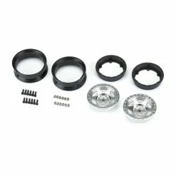 This is a pair of Crestline 1.9″ Aluminum Composite Internal Bead-Loc Wheels. Pro-Line is proud to introduce the Crestline 1.9″ Aluminum Internal Bead-Loc Wheels! These new Crestline wheels are designed to not only look scale with the stepped 6 spoke design, but to be super easy to use by only requiring 6 screws per wheel for mounting tires. The face of the Crestline has been CNC machined to exacting tolerances and precision finishes that are second to none! These look just like real wheels! The unique 3-piece wheel design bolts together in the back and locks on to Pro-Line’s incredible list of 1.9″ Crawling Tires the same way as Pro-Line’s Impulse 1.9″ plastic wheel. The overall wheel width and wheel offset are the same as Pro-Line’s Impulse 1.9″ plastic Wheels, so you know they will fit your truck and look good doing it. Get your very own set of Pro-Line Crestline 1.9″ Aluminum Composite Wheels today!
