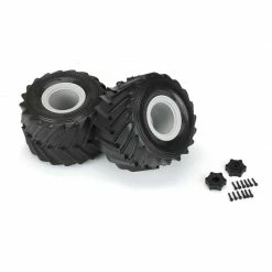 This is a pair of pre-mounted Demolisher Tires for the Losi® LMT. Losi® has unleashed the most exciting solid axle monster truck ever produced with the LMT (Losi® Monster Truck) and Pro-Line already has you covered with high-performance Demolisher tires made specifically for your truck! The Demolisher tires are mounted onto the stock gray LMT wheels and feature extremely sharp tread that will bite into any surface. Just like full-size monster truck tires that have been modified and grooved for maximum performance, the Demolisher tires feature scale grooves in between the chevron style tread for exceptional scale realism. As you should expect from Pro-Line, the Demolisher tire is made from soft and sticky rubber that will give your LMT maximum wheelie-popping traction. Demolish the competition with Pro-Line’s pre-mounted Demolisher LMT tires! Get your own set today!