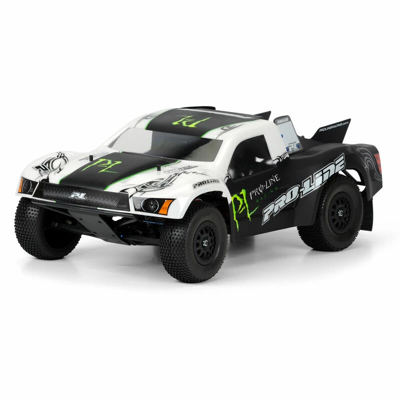 This is a Flo-Tek Clear Body for Slash®, Slash® 4X4, SC10, 22SCTâ„¢, TEN-SCTEâ„¢ and others. Introducing the first SC body specifically designed to minimize the short-course body parachute effect! If you have ever raced or bashed a short-course truck, you know that SC bodies act like parachutes when going over jumps, causing you to lose control and crash. Pro-Line’s new Flo-Tek SC body features futuristic styling coupled with large vent holes that allow air to flow through eliminating aerodynamic drag. The locations and size of the vents were designed to maximize air flow through the body while keeping the aggressive and high-tech look. Don’t get caught in the wind while the competition passes you by Get Pro-Line’s new Flo-Tek SC body today!