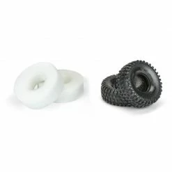 This is a pair of Hyrax 1.9″ Rock Crawling Tires in the Super Soft Predator Compound. The future of 1.9″ Tire Performance has arrived with Pro-Line’s Hyrax Tire! Designed from the ground up for maximum grip on the toughest terrain, the Hyrax tire is ready for anything your Scale Adventure might throw at you. The Hyrax is now available in the softest Rock Crawling Rubber ever made: The Predator Compound! The Super Soft Predator Compound excels on wet or ultra-low traction surfaces to give you grip like you have never experienced before. The Hyrax tire features an aggressive and open tread pattern with each tread block containing multiple Sipes for incredible tread flex. The highly detailed connected tread on the sidewall of the Hyrax extends out for unmatched side-hilling performance. The Hyrax also features futuristic stepped tread blocks that create even more forward gripping edges that dig into slick rock like no other scale tire Pro-Line has produced to date!