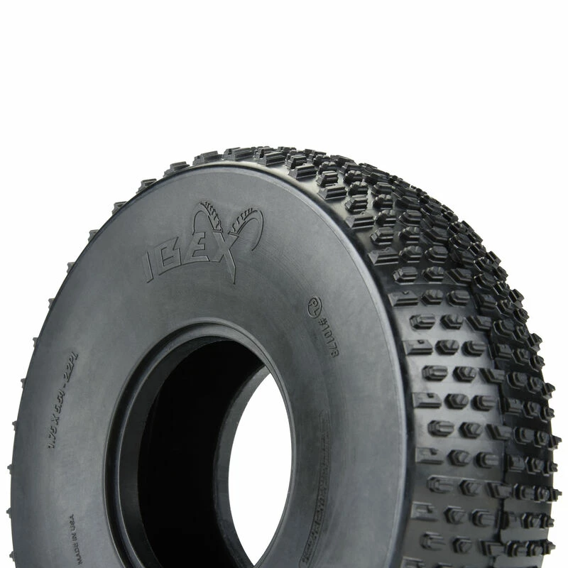 This is a pair of Ibex Ultra Comp 2.2″ Tires No Foam. Pro-Line is ready to unleash the Ibex; the ultimate 2.2″ Competition Crawling Tire! In nature, the Ibex is a powerful and wild species of mountain goat known for its large horns and incredible climbing abilities on near-vertical rock faces. This amazing animal served as an inspiration for developing the pinnacle of comp crawling tire performance: the 2.2″ Ultra Comp Ibex tire in the legendary G8 compound.