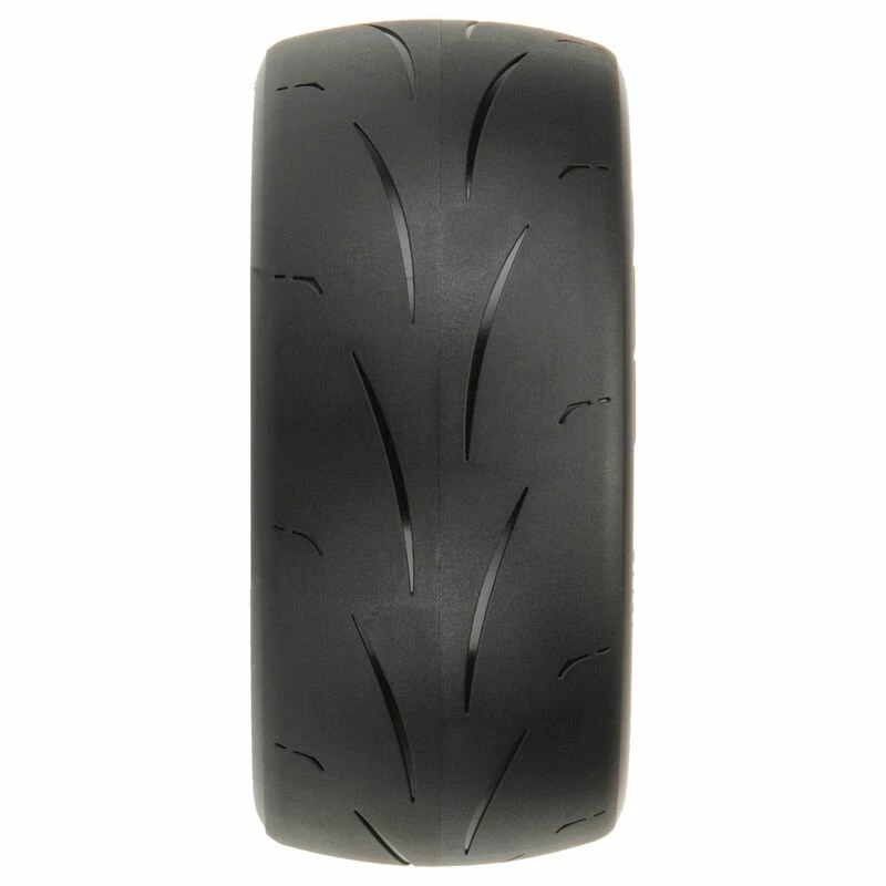 Pro-Line’s Prime tires feature unique grooves that add traction and stability when the track is freshly watered or when there is a slight layer of thin dust that would cause a traditional “slick” tire to spin. The raised treaded portion of the Prime tire has a distinctive rough surface texture similar to a ground “slick” tire and makes the Prime tire have the maximum performance right out of the package.