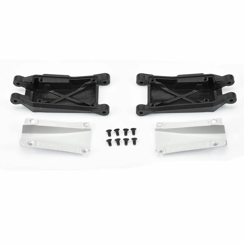 This is the PRO-Arms Rear Arm Kit for Slash® 2wd. Pro-Line is tremendously proud to introduce the new PRO-Series performance upgrade parts that are proudly Made by Us in the USA starting with the PRO-Arms for your Slash® 2wd! The PRO-Arms Front Arm Kit includes cutting edge race-style Black arms with smooth bottoms that are capped off with Stone Gray stiffening plates resulting in extremely durable arms. The Arm plates are held on by multiple Flat Head screws and the Stone-Gray color can be dyed or painted to match your truck’s style!