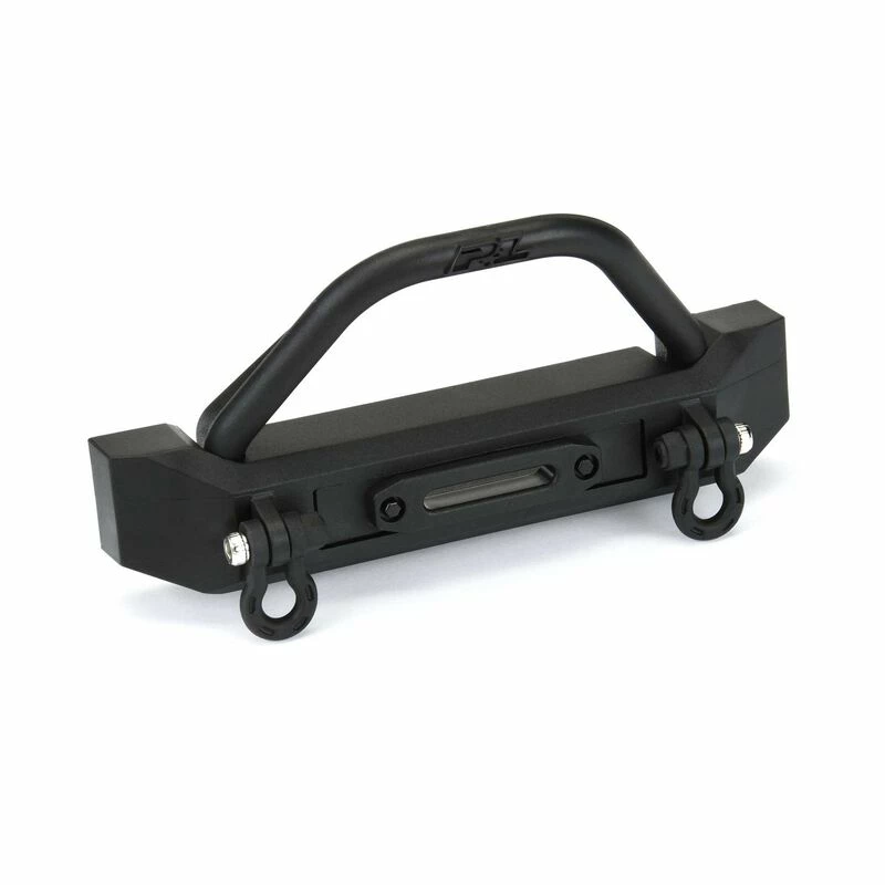 This is a Ridge-Line High-Clearance Crawler Front Bumper. Pro-Line is proud to introduce our latest in Scale Crawler Accessories, the all-new Ridge-Line High-Clearance Crawler Front Bumper for SCX10™ II, TRX-4® and Ascender®! This bumper was designed from the ground up to achieve the highest front bumper clearance possible while maintaining a Scale Appearance. The Ridge-Line High-Clearance bumper is also extremely versatile allowing you to run the included molded winch fairlead or swap it out for Pro-Line’s 2″ Super-Bright LED Light Bar (sold separately) for an integrated bumper light! Pro-Line engineers also designed the bumper to allow for the use of the included Push Bar or eliminating the Push Bar altogether for a sleeker, low-profile look. D-Ring shackles are included to finish off the Scale Appearance of this 4″ wide awesome new bumper.