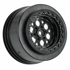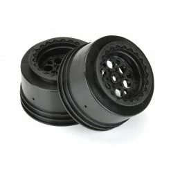 This is a pair of Showtime+ Wide SC / 2.2″/3.0″ Black Drag Wheels. It’s Showtime! Pro-Line has a Wide SC format Black Drag wheel featuring a scale spoke pattern that mimics full-size drag wheels. The Showtime+ Wide SC wheel is a perfect fit for Pro-Line’s Reaction+ HP Wide SC tires (10188-203), but this wheel is also designed to fit standard width 2.2″/3.0″ SC tires using the extra inner bead channel. The Showtime+ wheels are strong and lightweight 12mm hex wheels making them the ideal choice for performance drag racing. The wheel offset is ideal for Losi® 22Sâ„¢ No Prep Drag Car, 2wd Slash® trucks converted to no-prep Drag Racing cars and AE DR10. The Showtime+ Wide SC Drag wheel and every other wheel that Pro-Line makes is proudly Made in the USA. Launch your no-prep Dragster to the next level with the Pro-Line Showtime+ Wide SC Drag Wheels today!