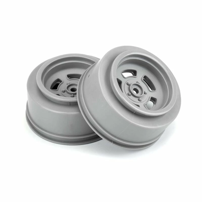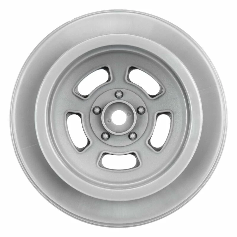 This is a pair of Slot Mag Drag Spec 2.2″/3.0″ Stone Gray Rear Wheels. Pro-Line is kicking it back old-school with Slot Mag style wheels for your no-prep SC drag car! Slot Mag style wheels have been a staple wheel design in racing for many decades and Pro-Line is proud to bring it to you in 2.2″/3.0″ Stone Gray rear wheels. The outside ring of this wheel has a shiny, polished finish while the spoke detail is textured with a matte finish to match the look and feel of the real thing! The Slot Mag wheels were specifically made for no-prep Drag Racing and are a perfect fit with Pro-Line’s Hoosier Drag 2.2″/3.0″ Rear Tires!