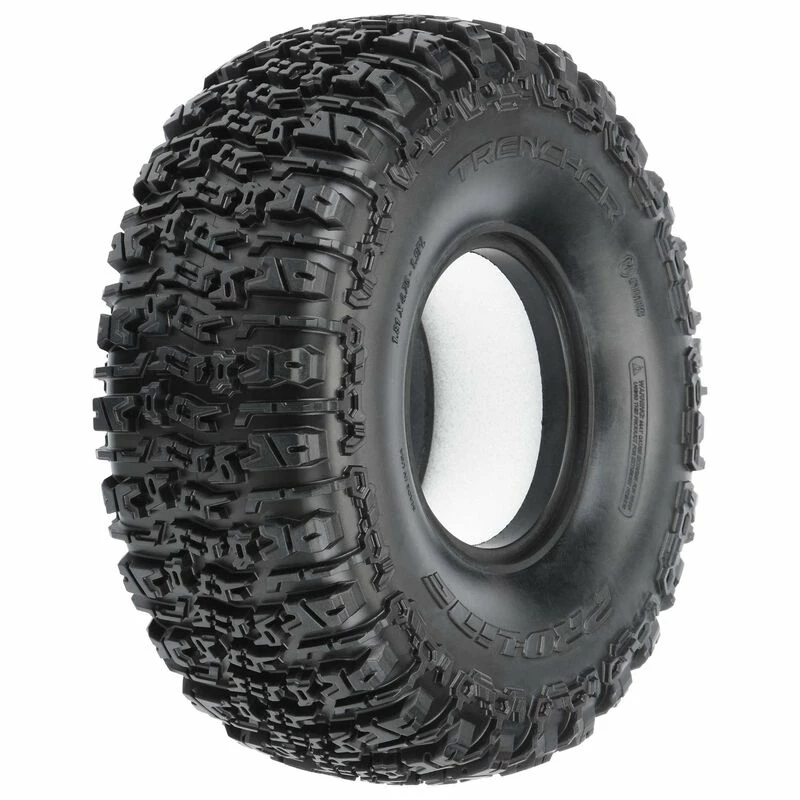This is a pair of Trencher 1.9″ Rock Crawling Tires. The almighty Hyrax finally has some real competition with Pro-Line’s 1.9″ (4.75″ Tall x 1.81″ Wide) Trencher Tire! Inspired by Pro-Line’s insanely popular all-terrain Trencher tread, this Class 2 legal crawler tire is ready for anything your Scale Adventure might throw at you. The Trencher 1.9″ features an extremely aggressive tread pattern with each tread block containing multiple sipes and multiple levels for incredible tread flex while still looking great on a Scale Rig. The highly detailed connected tread on the sidewall of the Trencher extends out for great side-hilling performance that only slides out when you want it to! The Trencher 1.9″ tire is made from Pro-Line’s Legendary G8 material and Super Soft Predator Compound, so you know it provides the performance you can depend on. The future of 1.9″ tire performance is here with Pro-Line’s new Class 2 Trencher tires! Get your own set of Trenchers today!