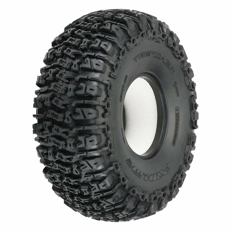 This is a pair of Trencher 2.2″ Rock Crawling Tires. The almighty Hyrax finally has some real competition with Pro-Line’s 2.2″ (5.75″ Tall x 2.27″ Wide) Trencher Tire! Inspired by Pro-Line’s insanely popular all-terrain Trencher tread, this rock racing tire is ready for anything the terrain might throw at you. The Trencher 2.2″ tire features an extremely aggressive tread pattern with each tread block containing multiple sipes and multiple levels for incredible tread flex while still looking great on a Scale Rig. The highly detailed connected tread on the sidewall of the Trencher extends out for great side-hilling performance that only slides out when you want it to! The Trencher 2.2″ tire is made from Pro-Line’s Legendary G8 material Compound, so you know it provides the performance you can depend on. The future of 2.2″ tire performance is here with Pro-Line’s new Trencher tires! Get your own set of Trenchers today!