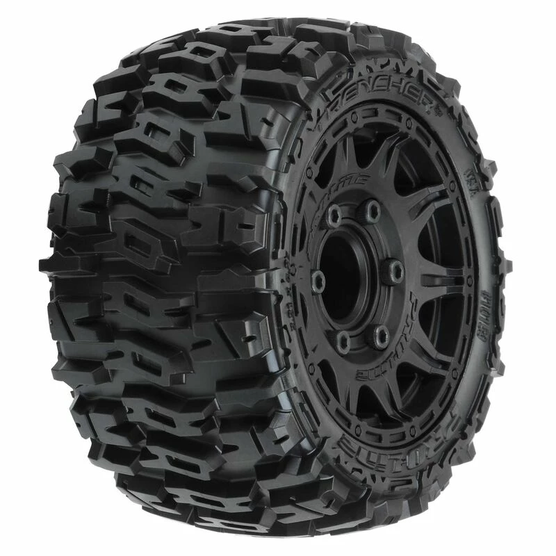 PRO1015910 | Trencher LP 2.8″ All Terrain Tires Mounted on Raid Black 6×30 Removable Hex Wheels (2) for Rustler® 2wd & 4wd Front and Rear