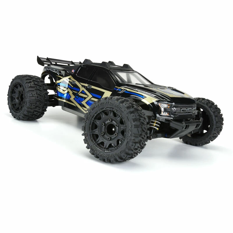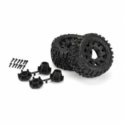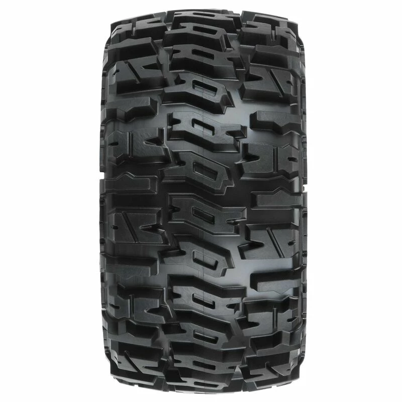 The Trencher LP 2.8″ now comes conveniently Pre-Mounted on the next generation 2.8″ wheel design from Pro-Line, the Raid 2.8″ Removable Hex Wheel! Imagine being able to easily change the offset of your wheel to fit different applications by simply changing out the hex! You can go from the included 12mm narrow offset (2wd Stampede®/Rustler® Rear) to the included 12mm wide offset hexes (2wd Stampede/Rustler® Front and 4×4 Stampede®/Rustler® Front and Rear) quickly and easily. Also imagine being able to replace a damaged wheel hex without needing to replace your glued tires (PRO633500 Replacement Hexes) or even upgrading your wheels to 17mm wheel hexes (PRO633600 Sold Separately) or 14mm hexes (PRO634700 Sold Separately) for extreme use! These Raid 2.8″ wheels accomplish all of this and more by using Pro-Line’s unique 6×30 interlocking hex design that is secured to the wheel by 6 M3 screws that are spaced 30mm across. The built-in adjustability and ease of use make this a must-have wheel for bashers everywhere!