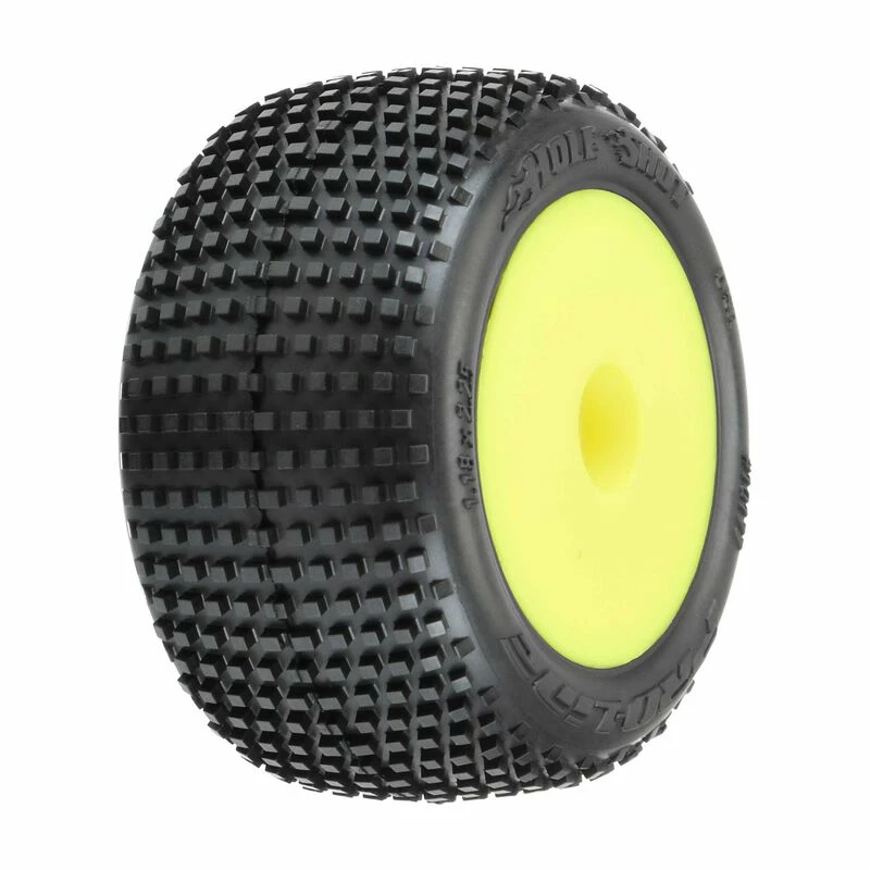 The Mini-Tâ„¢ is back, and Pro-Line now has the perfect upgrade tire for your new mini-truck: The pre-mounted Hole Shot tire! The Hole Shot is the tire that everyone turns to when looking for an edge over the competition because it just works, everywhere. Period. The Hole Shot is renowned across the world as one of the most used race tires of all time. From World Championships to National Championships, Regional race events to club race events, the Hole Shot design has won just about every title imaginable. Pro-Line’s innovation team is proud to bring you the Hole Shot tire mounted on Yellow Wheels designed specifically for the new Mini-Tâ„¢ 2.0 for maximum performance on a variety of surfaces. The unique mini-pin Hole Shot tire is made from our soft M3 compound and is made to fit directly onto the stock Mini-Tâ„¢. Soft open cell foam is included for maximum grip. The Hole Shot is the new must-have tire for the Mini-Tâ„¢ 2.0, so get them today!