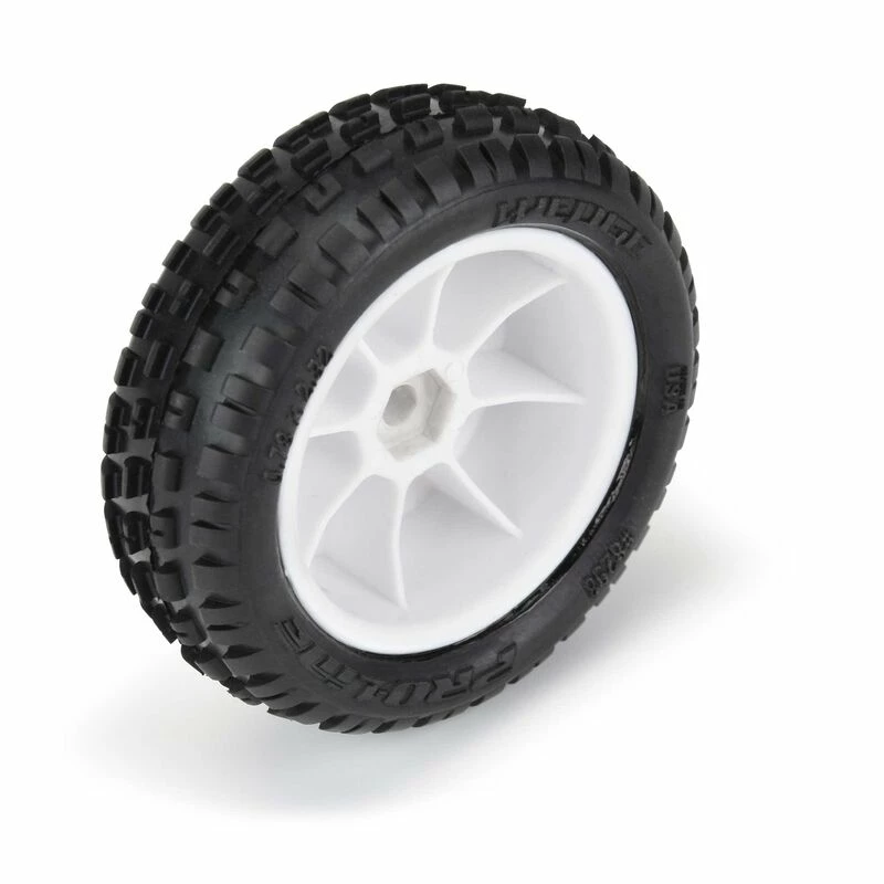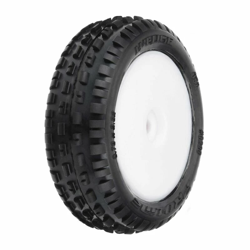 The Mini-Bâ„¢ is one of the most exciting new mini vehicles releases and Pro-Line is ready to take it to the next level with mini carpet tires. Introducing Mini-Bâ„¢ Wedge front tires perfect for racing your friends at the local carpet track! You can even set up a track in your living room! The Wedge features the same iconic hook-shaped pins that you know and love from the 1:10 size tires, which provide the steering you need without being too grabby. The Wedge front tires are conveniently pre-mounted to White Mini-Bâ„¢ front wheels and are made from a special carpet racing compound. Pair the Wedge front tires with the Prism rear tires (PRO829713) for maximum carpet performance. Don’t get left out of the Mini-Bâ„¢ carpet fun. Get your own set of Pro-Line Mini-Bâ„¢ carpet tires today!