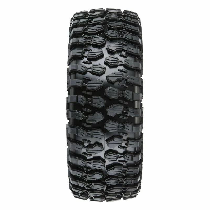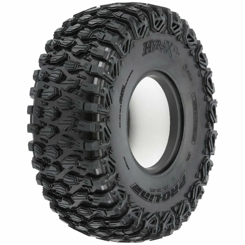 Take your SCX6â„¢ to the ultimate level of rock-climbing performance with Pro-Line’s Hyrax XL Tire in G8 compound! Designed from the ground up for incredible grip and stability on the toughest terrain, the Hyrax XL 2.9″ tire is ready to tackle anything your Axial® SCX6â„¢ can dish out. The Hyrax features an aggressive open tread pattern with each tread block containing multiple sipes for improved traction and comes in at a massive 7.28″ tall and 2.75″ wide.