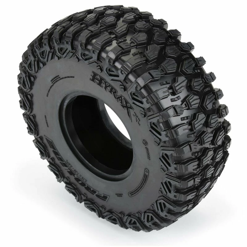 The highly detailed connected tread on the sidewall of the Hyrax extends out for added scale realism and sidewall rigidity to help prevent traction rolls. The Hyrax is made from the same G8 compound as the 1.9″ crawler tires, so you know it provides the performance and durability that you can depend on. This tire will fit directly onto the stock 2.9″ SCX6â„¢ bead-loc wheel. Don’t get left behind, take your adventure to the next level with Pro-Line’s Hyrax tires!