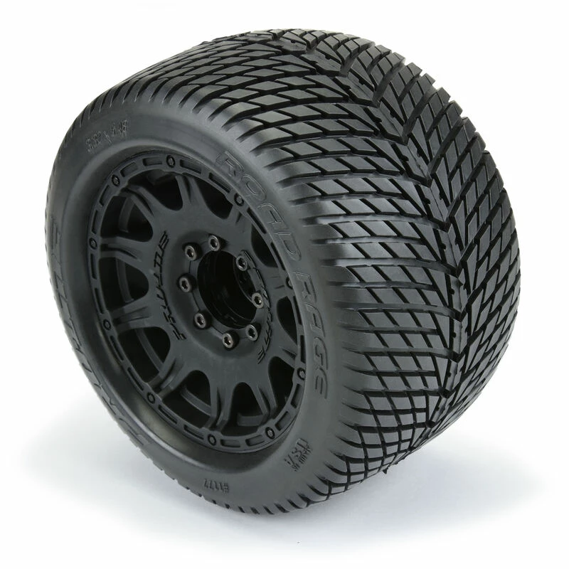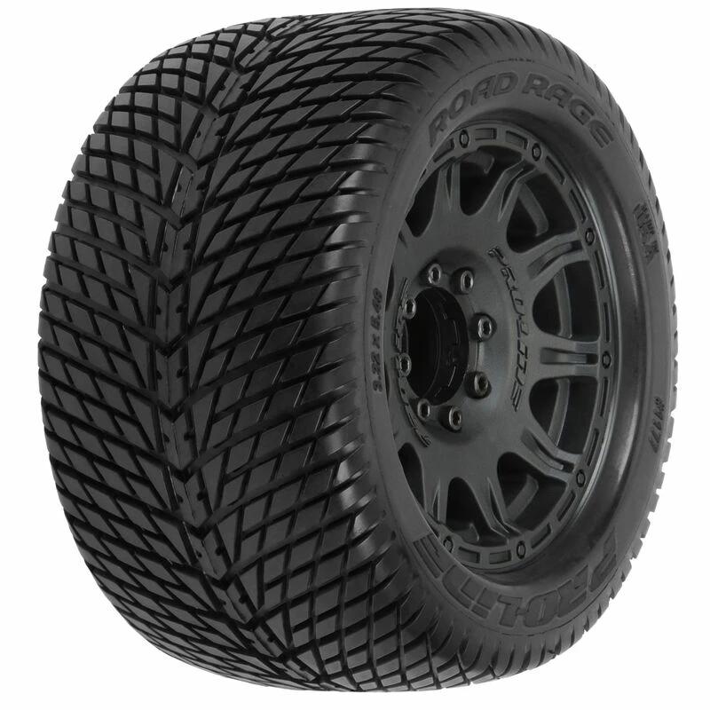 PRO117710 | Road Rage 3.8″ Street Tires Mounted on Raid Black 8×32 Removable Hex Wheels (2) for 17mm MT Front or Rear