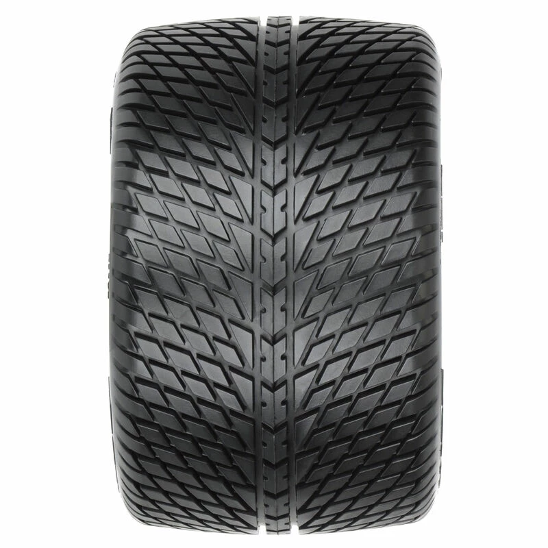 When racing around the neighborhood or venturing down to your local on-road race event, your typical street tread design does not support the traction and handling characteristics that you are looking for. So, what do you do? You get a set of Pro-Line’s Road Rage 3.8″ tires! Incorporating an ultra-low sidewall, the Road Rage tires offer the maximum in predictability, stability, and responsiveness. When you turn, they turn harder. When you brake, they brake quicker. The Road Rage tires just plain work.