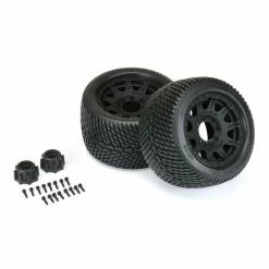 The Road Rage 3.8″ tires come Pre-Mounted on the next generation 3.8″ wheel design from Pro-Line, the Raid 3.8″ Removable Hex Wheel! Imagine being able to replace a damaged wheel hex without needing to replace your glued tires! These Raid 3.8″ wheels make this possible by using a unique 8×32 interlocking hex design that is secured to the wheel by 8 M3 screws that are spaced 32mm across. The hexes are included and are also available separately (PRO634500). The built-in adjustability and ease of use make this a must-have wheel for bashers everywhere! Be the first to own the latest and greatest technology from Pro-Line, get the pre-mounted Road Rage tires now!