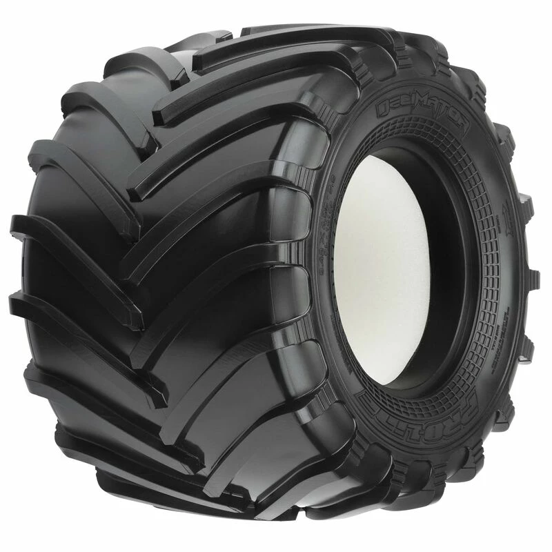 The overall size and width of the Decimator tire have been finely tuned to be even more lightweight and agile than the Pro-Line Devastator 2.6″ tire, which makes it ideal for racing applications. The Decimator includes soft white foam inserts for ultra-plush landings, greatly improving the handling and performance of your Solid Axle Monster Truck. The Decimator is destined to become the go-to tire for Solid Axle Monster Trucks! Decimate the Competition! Get yours today!!