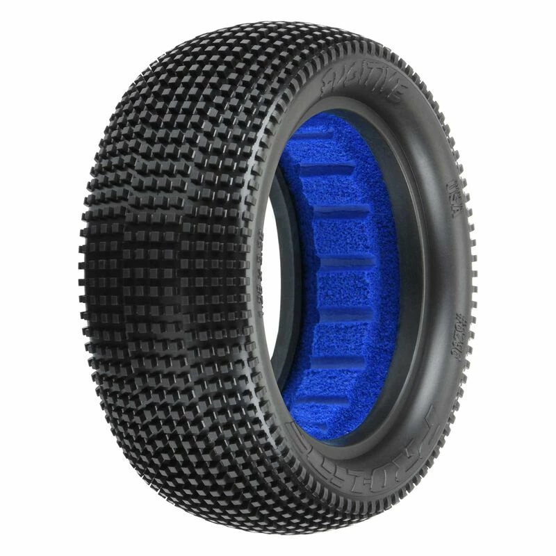 Pro-Line is proud to bring the Fugitive tread to 1:10 size with the Fugitive 2.2″ 4wd Front Buggy Tire! The Fugitive was developed to be the longest lasting race tire ever produced while still being quick and agile. Pro-Line’s Fugitive tire sets the standard for wear and performance with a whole new design philosophy — small, tightly packed pins that can handle the abuse of being run on concrete. Includes Pro-Line’s long-lasting Closed Cell Foam inserts. S tire compound is perfect for high grip European style outdoor tracks.